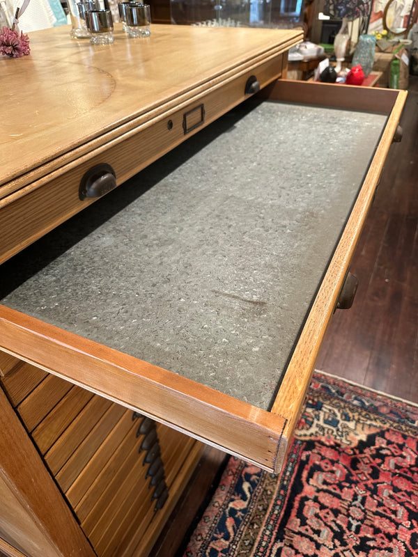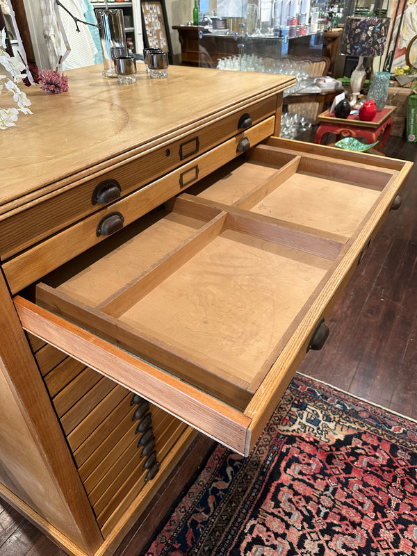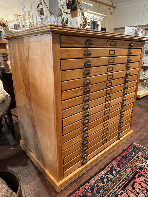 Vintage Oak Flat File Cabinet - 16 Drawer